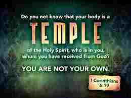 “Do you not know that your bodies are temples of the Holy Spirit, who is in you, whom you have received from God? You are not your own; you were bought at a price. Therefore honor God with your bodies.” (1 Corinthians 6: 19-20)