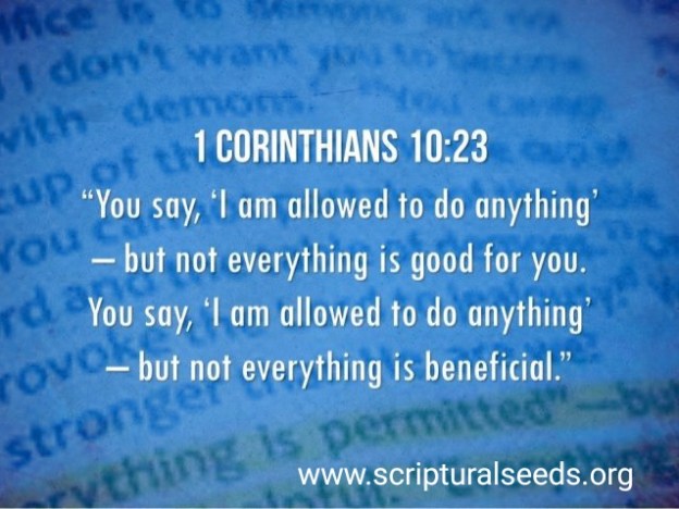 “All things are lawful for me, but not all things are helpful; all things are lawful for me, but not all things edify.” (1 Corinthians 10:23)