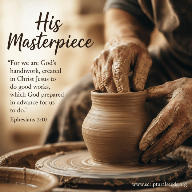 “Embrace your identity as God’s masterpiece, for in His grace, you are not defined by your works, but by the love that empowers you to fulfill His purpose.”