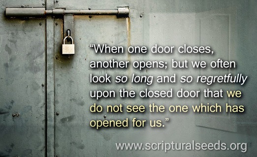 “When one door closes, another opens; but we often look so long and so regretfully upon the closed door that we do not see the one which God has opened for us.”